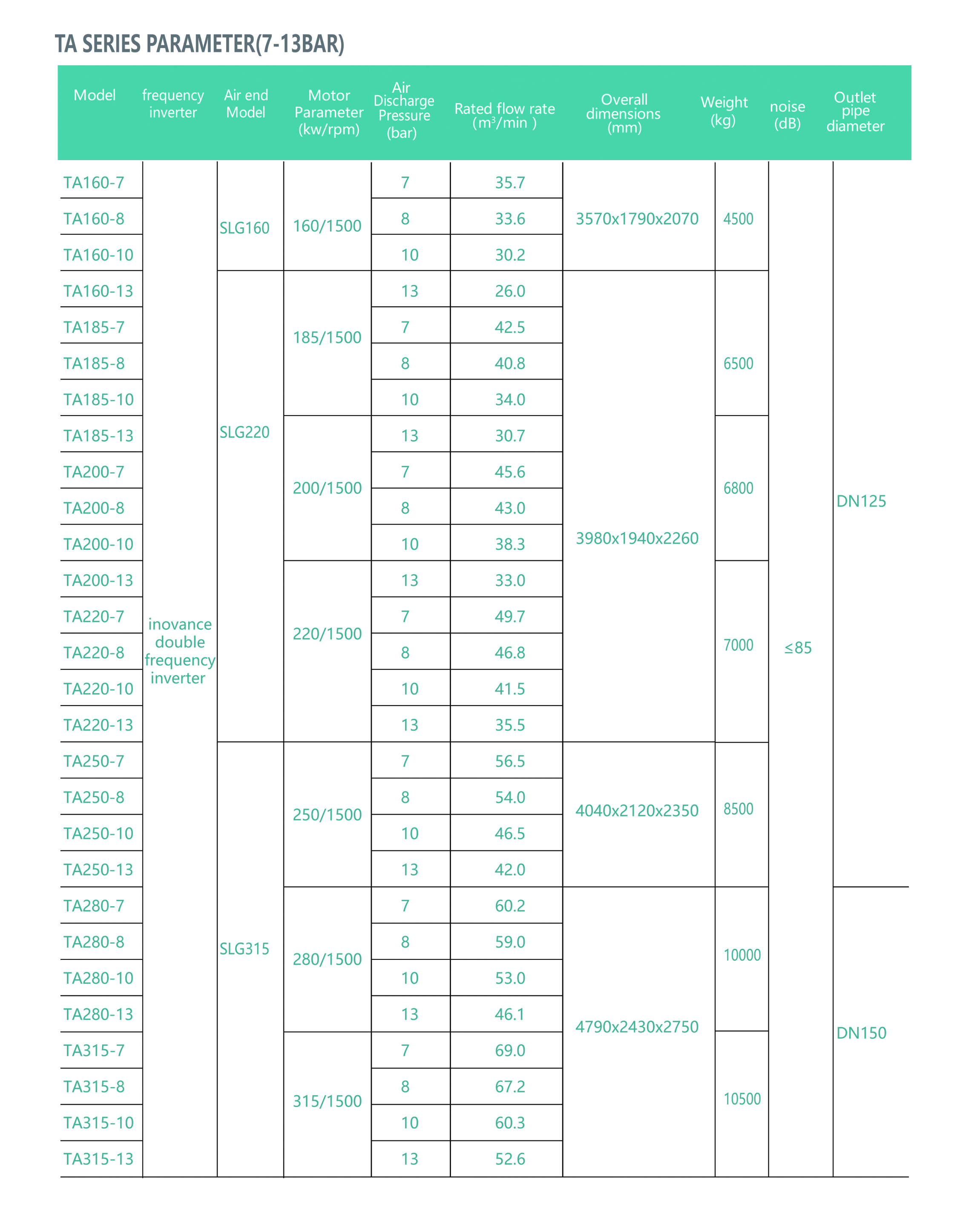 Note: The actual air output of the unit according to ISO1217, in 20 degrees environment and the highest working pressure of the measured value.