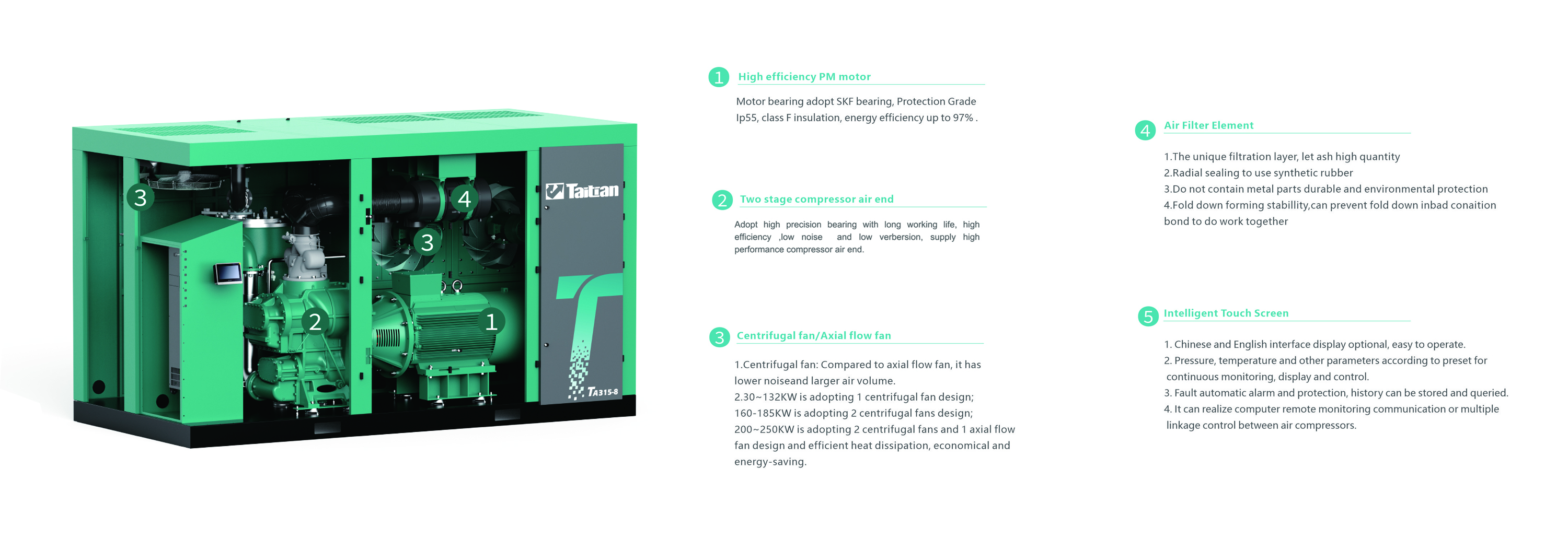 3.Motor adopt two frequency inverters, , keep energy-saving to excellent;